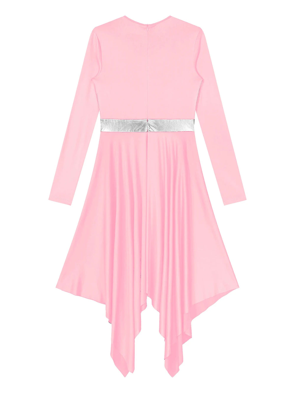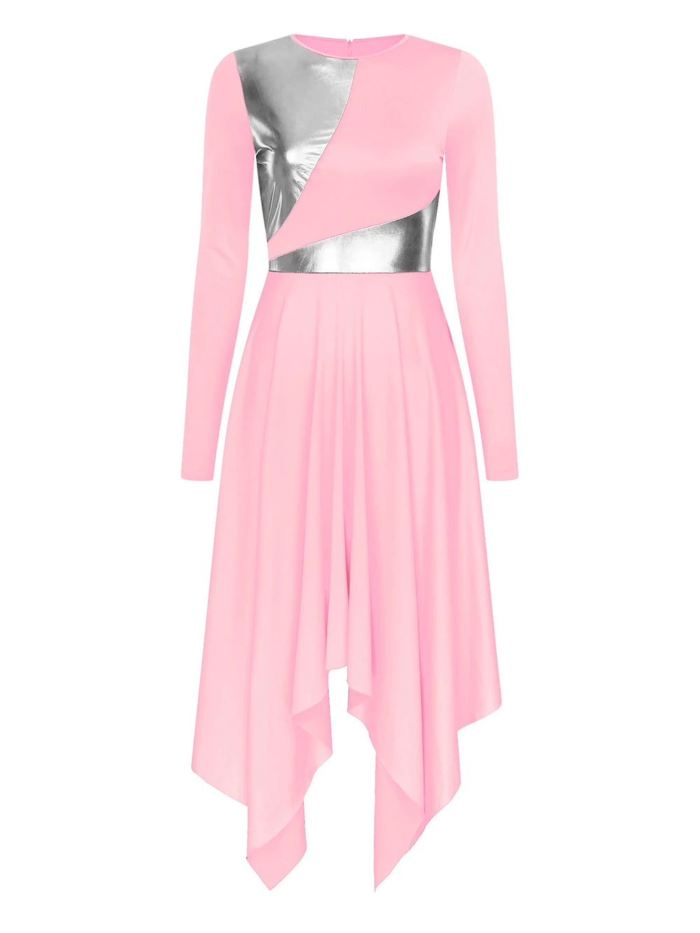Robe de danse pour femme à col rond et manches longues avec fermeture éclair invisible dans le dos pour un port facile.