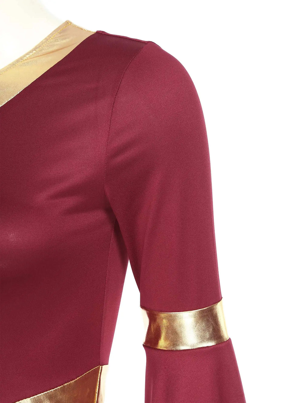 Robe de danse à col en V pour femme avec tissu métallique doré autour de la taille pour mettre en valeur la taille et vous faire paraître plus mince.