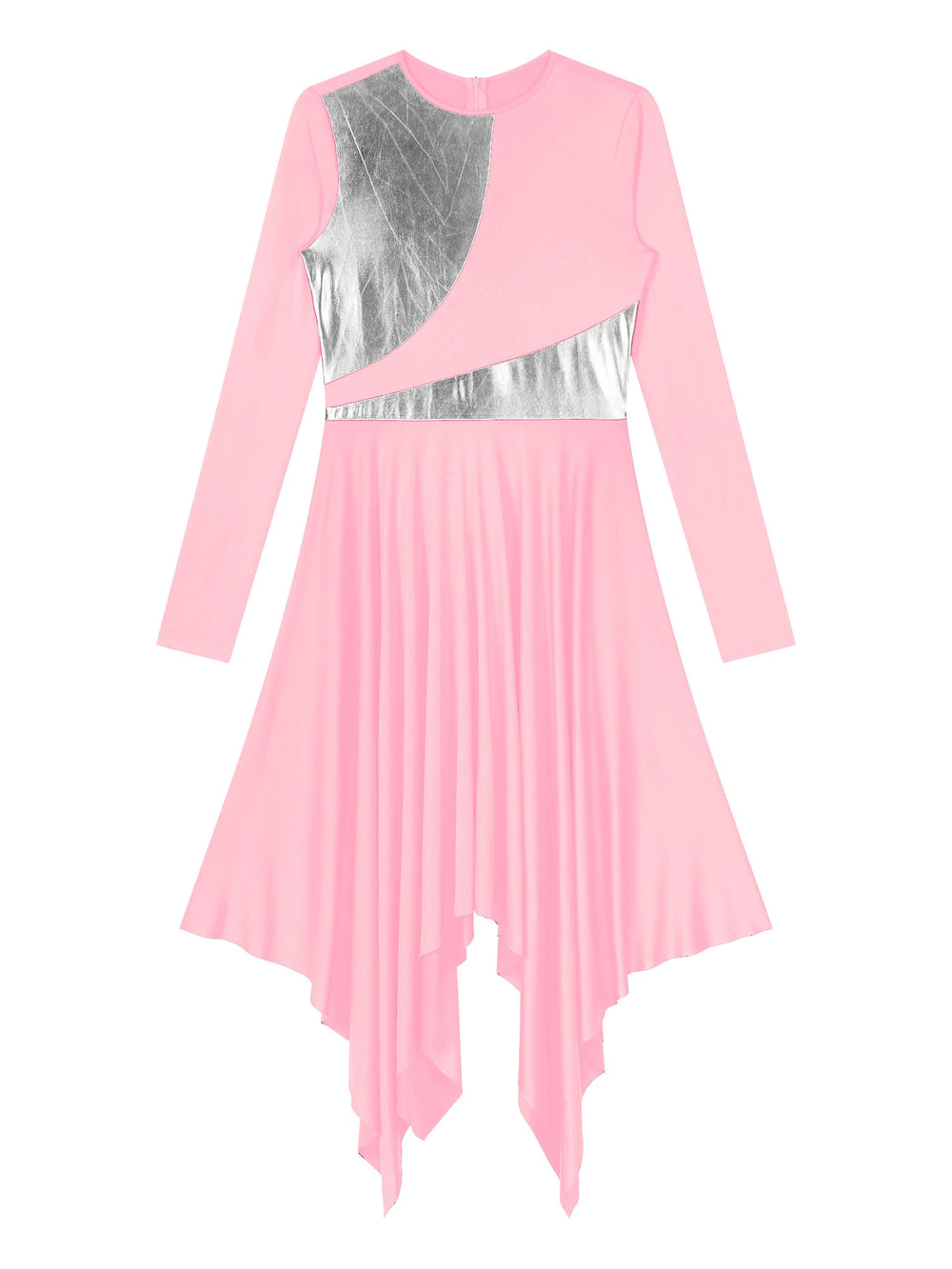 Le corsage de la robe de danse est conçu avec un bloc de couleur métallique pour égayer toute performance.